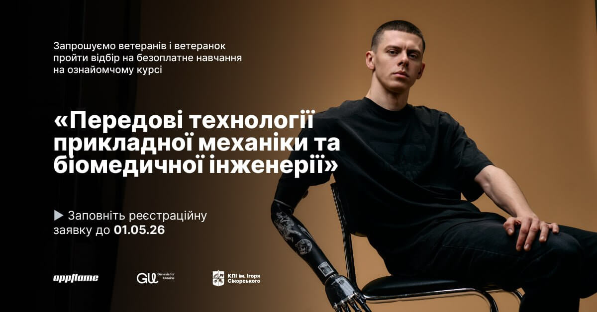 Grant for master's studies at Igor Sikorsky KPI — participants admitted to master's programs in "Biomedical Engineering" and "Applied Mechanics" will have the opportunity to receive a study grant from appflame and the Genesis for Ukraine foundation.